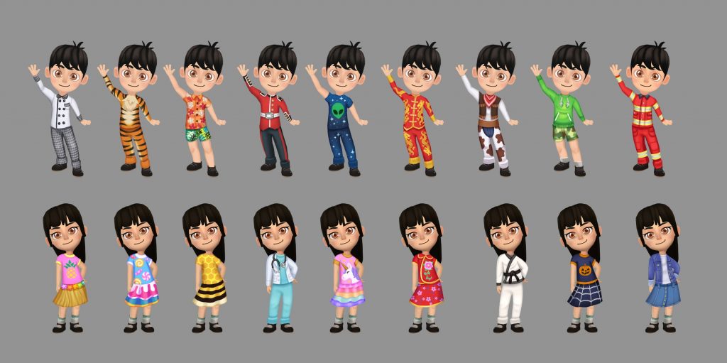 新增服饰总数量超过一百件!其中包括中国和英国风格套装,老虎、蜜蜂套装,消防员和牛仔风格套装;孩子们喜欢的独角兽图案衣服以及万圣节套装等。